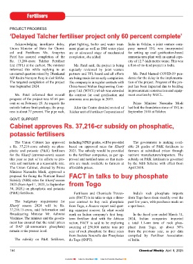 a Rs. 37,216-crore subsidy on phos- based on approved rates for Kharif able 28 grades of P&K fertilisers to India’s imports of liquefi ed natu- accounting for 21 percent of the mar- dar year (CY). In 2023, India was the