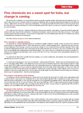 The business of fine chemicals is one where India has carved a reasonably competitive position, both locally and in international markets. The