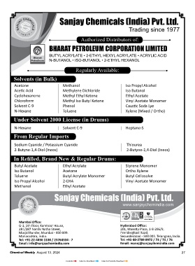 AVAILABLE REGULARLY Sanjay Chemicals (India) Pvt. Ltd.