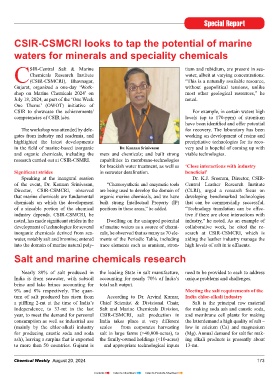 inorganic chemicals derived from sea- cals, he observed that as many as 70 ele- search at CSIR-CSMCRI, which is