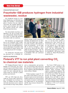 built by the Fraunhofer IGB in Stutt- trial solid and liquid waste streams – industrial-scale plant would also be