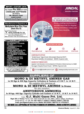 in 50 kgs. 400 Kgs. capacity cylinder and tankers of 10 m.t., 15 m.t. & 19 m.t.
