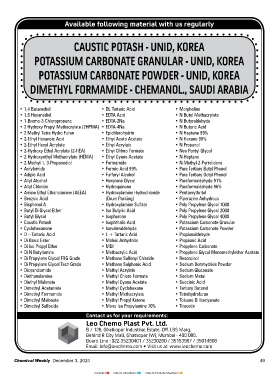• Di Propylene Glycol Tech Grade • Methane Sulphonic Acid • Sodium Borohydride Powder