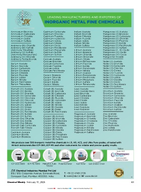 Visit us Booth 4P20 04-05 June 2025 Koelnmesse, Germany (3) Chemical Weekly February 11, 2025 63 Contents Index to Advertisers Index to Products Advertised