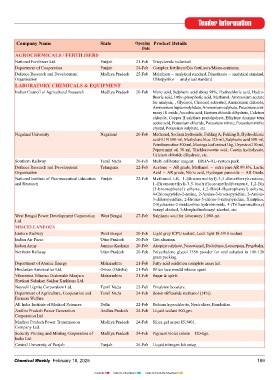 Chemical Weekly has tied up with ABC Procure (www.TenderTiger.com) – India’s only newspaper for tenders AGROCHEMICALS / FERTILISERS