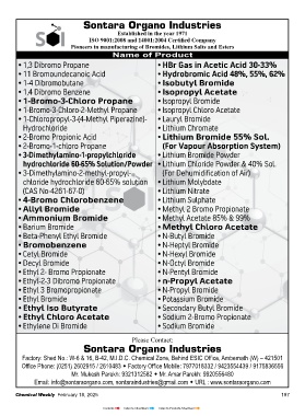 Borax (Granular) 50 48 Acrylic Acid 200 259 ß 1-Bromo-3-Chloro-2-Methyl Propane ß Isopropyl Chloro Acetate