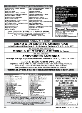 in 50 kgs. 400 Kgs. Capacity Cylinder and tankers of 10 M.t., 15 M.t. & 19 M.t.