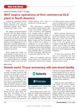 IBAT’s modular DLE system, cur- for FMC Technologies, which has been teries made using high nickel cathode processing costs. Compatible with a In addition to PVDF, Syensqo