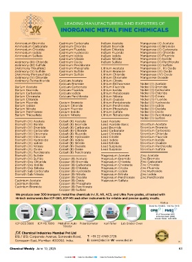 Visit us Stand No. RH.M01 - Hall No. RH-B 25-27 November 2025 India Expo Mart (IEMl), Greater Noida - Delhi NCR (4) Chemical Weekly June 10, 2025 63 Contents Index to Advertisers Index to Products Advertised