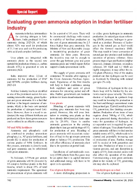 monia, which is the basic raw material Blending of green ammonia with from natural gas. Thiswill result in lower investment and time frame. and feed of the burgeoning population, ronment where the MRP of urea is fi xed