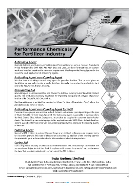 We also have Anticaking cum coloring agent for granular fertilizer. This product gives an