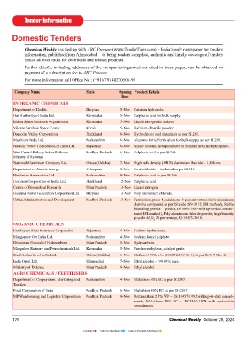 National Aluminium Company Ltd. Orissa (Odisha) 7-Nov High bulk density (HBD) aluminium fl uoride – 1,800-mt.