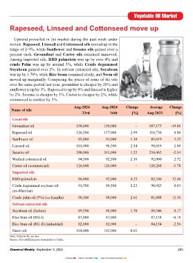 review. Rapeseed, Linseed and Cottonseed oils moved up in the