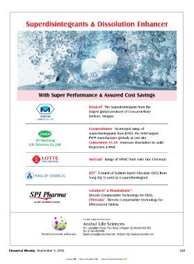 Chemical Weekly September 3, 2024 243 Contents Index to Advertisers Index to Products Advertised