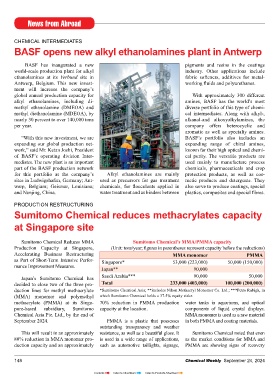 Sumitomo Chemical Reduces MMA Sumitomo Chemical’s MMA/PMMA capacity facilities that use sustainable feedstock to bring more bio-based solutions to degradable materials.