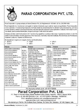 Parad Corporation is a manufacturer and supplier of variety of chemicals as per customer needs and specification. Parad Corporation