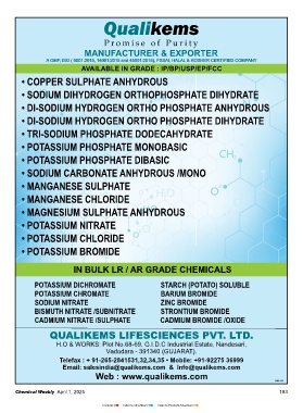 (Importers, Exporters, Stockists and Distributors) CHEMEPT SOLUTIONS Email: salesindia@qualikems.com & Info@qualikems.com