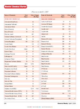 Name of Chemicals Pack Price Change Name of Chemicals Pack Price Change