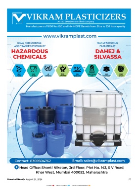 Chemical Weekly August 27, 2024 71 Contents Index to Advertisers Index to Products Advertised