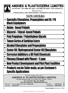 Ethanolamines, Alkyl Alkanolamines, Morpholines and Derivatives etc.