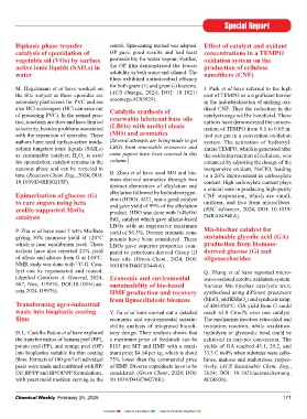 P. Zhu et al have used 5 wt% Mo/Beta yield of 96.3%. Diverse aromatic com- Mn-biochar catalyst for