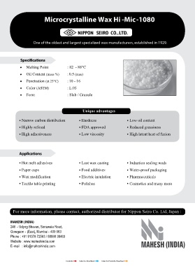For more information, please contact, authorized distributor for Nippon Seiro Co. Ltd, Japan :