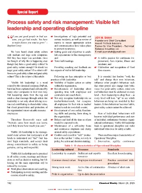 ‘Visible felt leadership’ is a word Visibility of leaders action on safety infl uence other people’s behaviour such