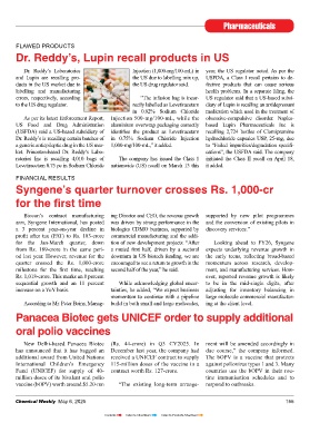 Grant Thornton. Data for Jan-Mar (Q1) for The sector’s shift toward regulated Indian pharma players pursued access Dr. Reddy’s is recalling certain batches of in 0.75% Sodium Chloride Injection hydrochloride capsules USP, 25-mg, due