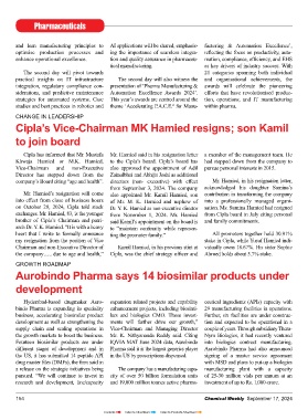 Mr. Hamied’s resignation will come also appointed Mr. Kamil Hamied, son contribution in transforming the company fi ling by GGL. newly acquired. Over the last 7-8